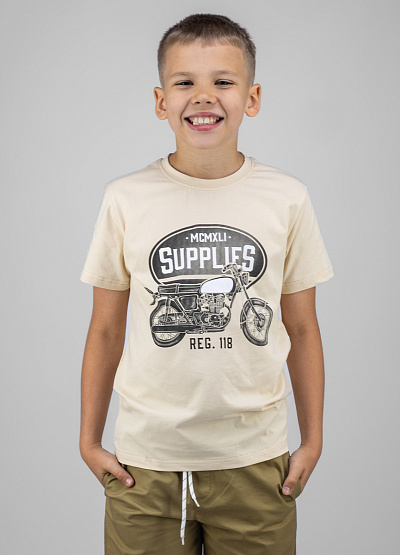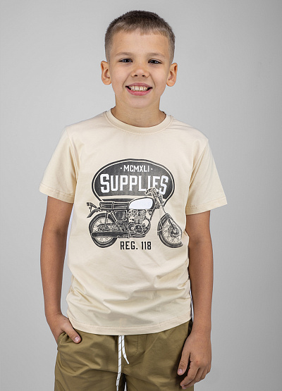 • Детская футболка бежевого цвета из хлопка от бренда Thomas Graf. Свободная модель. Лицевая часть декорирована принтом. Короткие рукава. Круглый вырез.