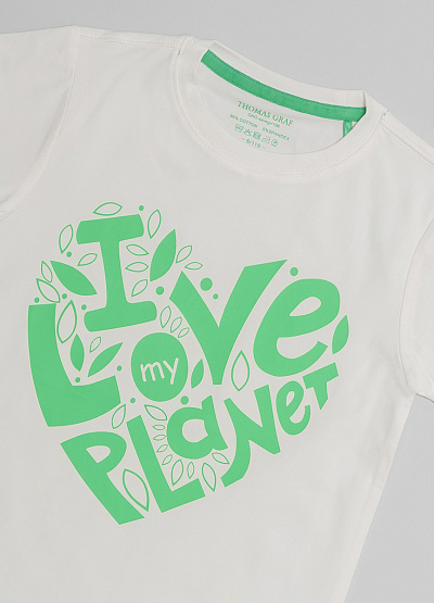 • Детская футболка белого цвета от немецкого бренда Thomas Graf. Модель выполнена из хлопка. Лицевая сторона декорирована крупным принтом. Короткие рукава. Круглый вырез.
