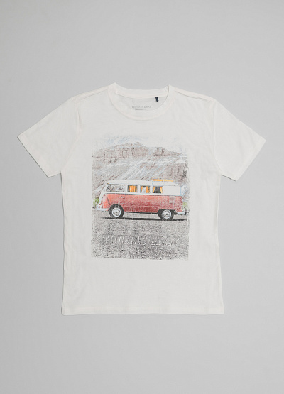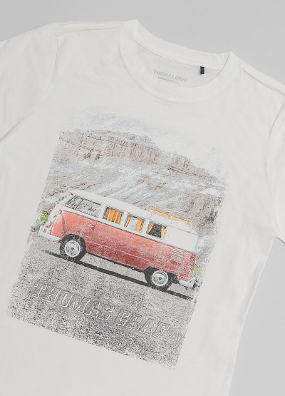 • Детская футболка белого цвета от немецкого бренда Thomas Graf. Модель выполнена из хлопка. Лицевая сторона декорирована крупным принтом. Короткие рукава. Круглый вырез.