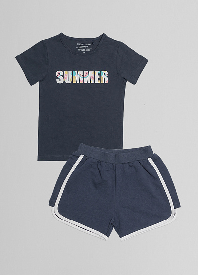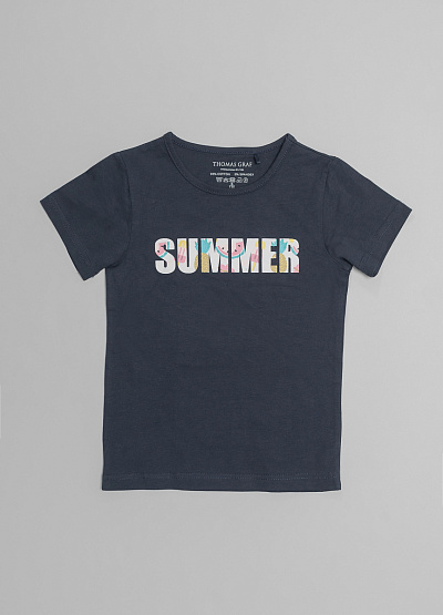 • Детская футболка темно-синего цвета от немецкого бренда Thomas Graf. Лицевая сторона декорирована крупным принтом. Короткие рукава. Круглый вырез.