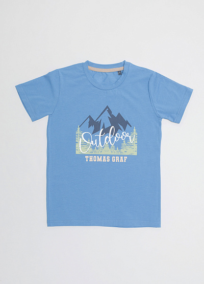 • Детская футболка голубого цвета от немецкого бренда Thomas Graf. Модель из хлопка. Лицевая сторона декорирована крупным принтом. Короткие рукава. Круглый вырез.