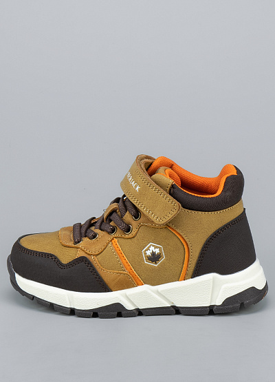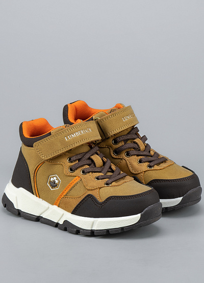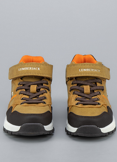 • Детские ботинки от бренда Lumberjack. Закругленный носок. Открытая шнуровка в тон. Ремешок на липучке украшен логотипом. Логотип сбоку и на язычке. Массивная рифленая подошва.