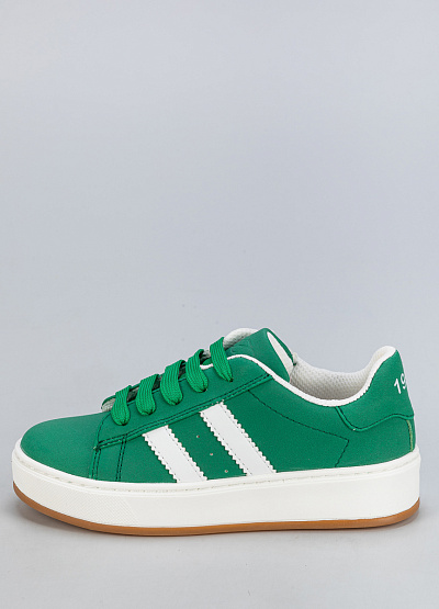 • Эти стильные детские кеды в ярком зелёном цвете из экокожи станут отличным дополнением гардероба! Классический силуэт с белыми полосками и контрастной подошвой делает их универсальными и подходящими как для повседневных прогулок, так и для спортивного стиля.