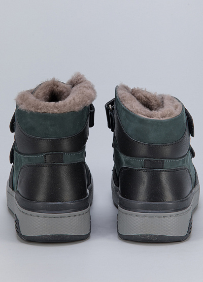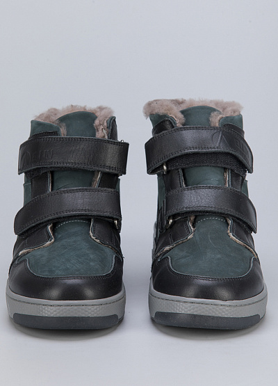• Детские кеды из натуральной кожи от бренда Ellin shoes. Закругленный носок. Две застежки на липучке. Тисненый логотип на ремешке. Меховая отделка. Плоская подошва.