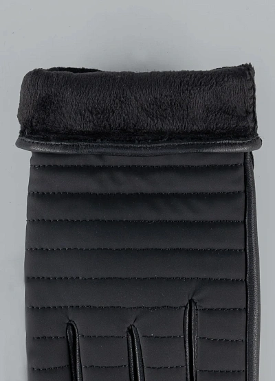 • Зимние перчатки выполнены в универсальном чёрном цвете и отличаются практичным, лаконичным дизайном. Модель имеет стёганую фактуру, которая не только придаёт аккуратный внешний вид, но и способствует лучшему удержанию тепла. Регулируемый ремешок с кнопкой на запястье обеспечивает надёжную фиксацию и комфортную посадку, защищая руки от холода и ветра. Перчатки хорошо сочетаются с верхней одеждой в классическом и повседневном стиле.