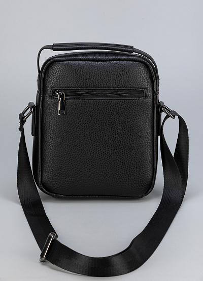 • Компактная мужская сумка через плечо из чёрной экокожи — классика в современном исполнении.