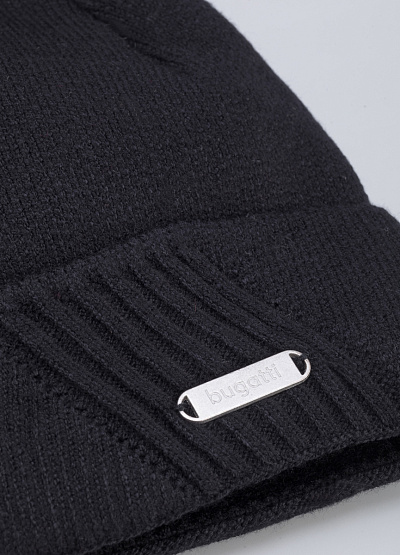 • Мужская вязаная шапка от бренда Bugatti. Лаконичная модель шапки держит форму, мягко облегая голову. Изделие стилизировано металлическим аксессуаром с логотипом бренда.