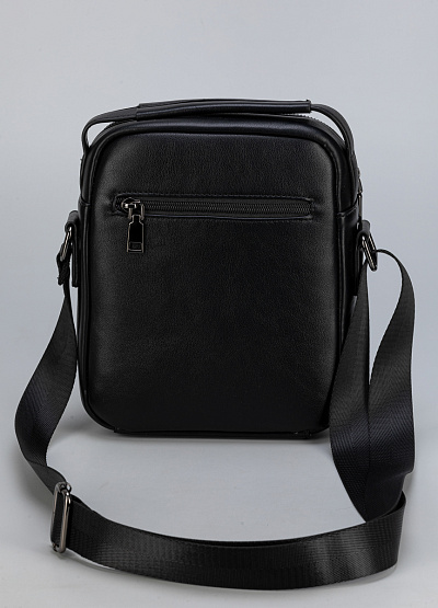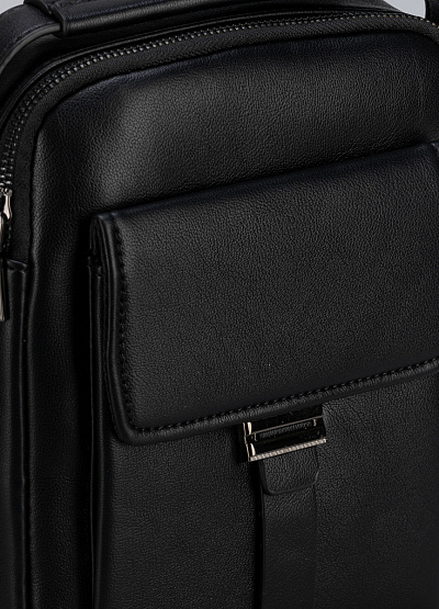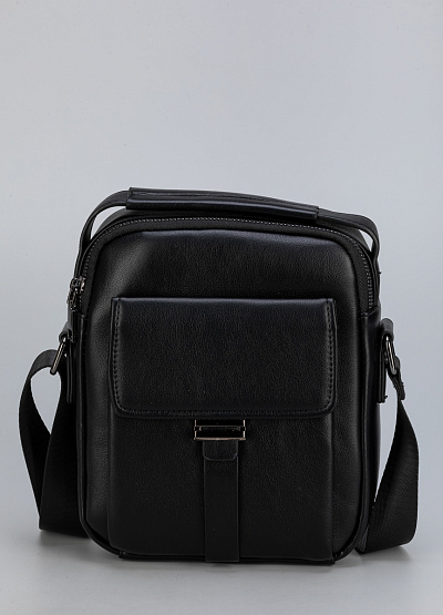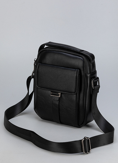 • Классическая мужская сумка через плечо из гладкой чёрной экокожи — сдержанный акцент в повседневном образе.