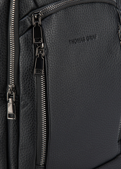 • Мужская нагрудная сумка из экокожи д от бренда Thomas Graf. Модель с ручкой для переноски. Карманы на молнии. Логотип по центру.