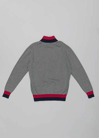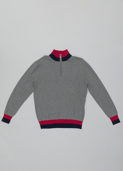 • Мужской свитер из хлопка от бренда Thomas Graf. Модель прямого кроя. Контрастный воротник-стойка с застежкой на молнию. Контрастный низ и манжеты.