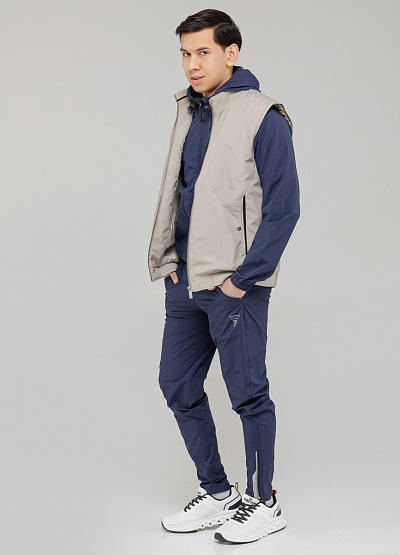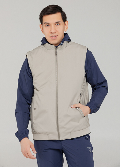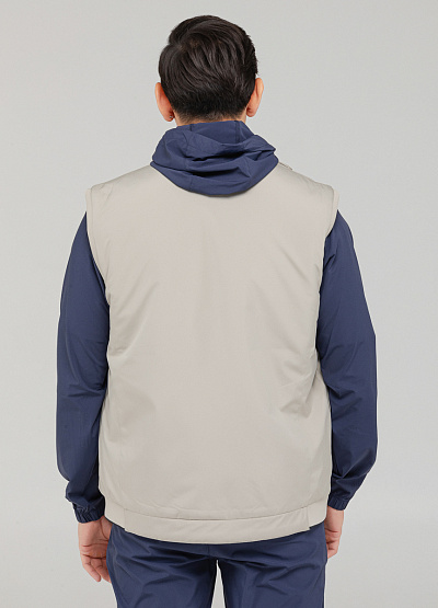 • Мужской утеплённый жилет в светло-бежевом цвете — практичный элемент для многослойного гардероба в прохладную погоду.