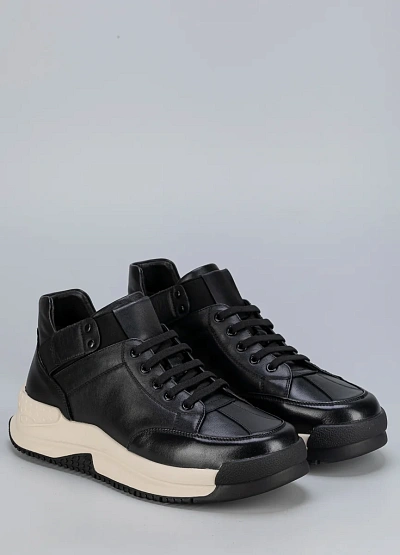 • Мужские черные кроссовки Mattini с контрастной белой подошвой выполнены в стиле модных баскетбольных силуэтов. Стиль и удобство сочетаются в этой модели благодаря анатомическому крою и высокому верху.