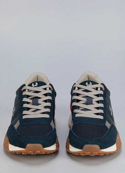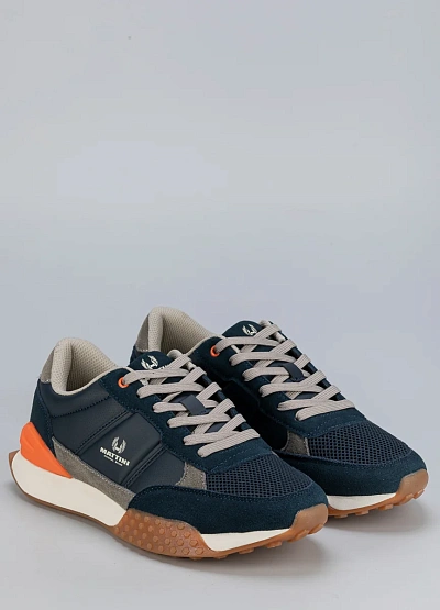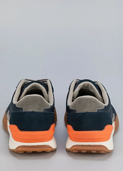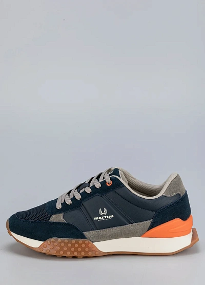 • Эффектные мужские кроссовки Mattini в тёмно-синей цветовой гамме с оранжевыми акцентами и контрастной белой подошвой. Модель сочетает в себе стильный внешний вид и продуманную эргономику. Вставки из замши, сетки и кожи создают интересную фактуру. Протекторная подошва и бренд Mattini делают модель одновременно практичной и стильной.