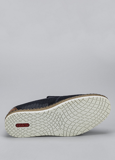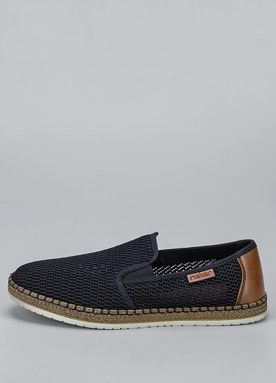 • Мужские слипоны из натуральной кожи от бренда Rieker. Они подойдут для повседневной носки — в них будет комфортно даже во время активного движения. Сквозная перфорация позволит стопе дышать целый день и отводить лишнюю влагу.