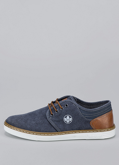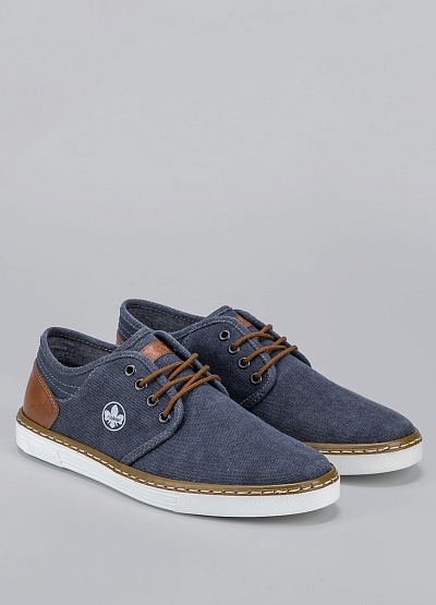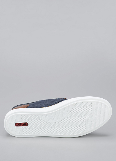• Мужские слипоны синего цвета из текстиля и экокожи от бренда Rieker. Они подойдут для повседневной носки — в них будет комфортно даже во время активного движения.
