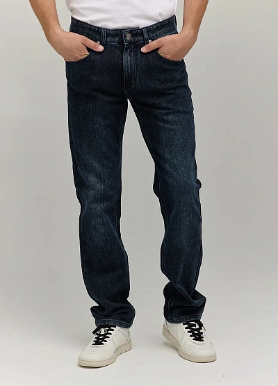 • Классические джинсы прямого кроя со средней посадкой. Плотный деним с небольшим комфорт-стрейчем держит форму и остаётся удобным целый день.
