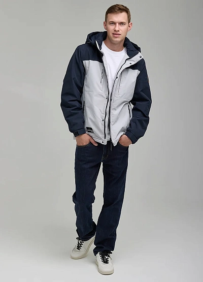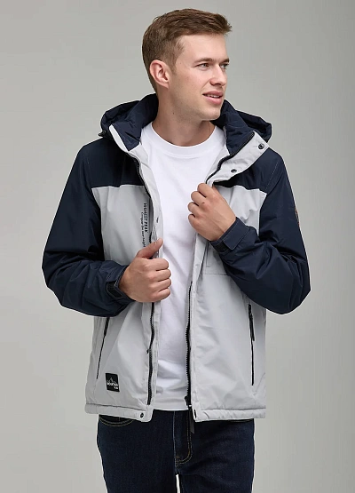 • Мужская двухцветная куртка с капюшоном. Практичная парка на каждый день: контрастная кокетка, ветрозащитная планка и удобные карманы.