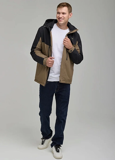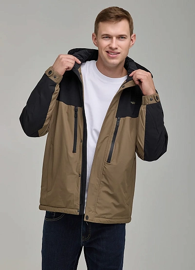 • Мужская двухцветная куртка с капюшоном. Функциональная модель с контрастными вставками и множеством карманов — удобно и стильно в ритме мегаполиса.