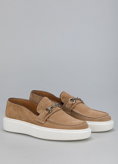 • Мужские лоферы из замши от бренда Vella Sport. Модель с язычком дополнена ремешком с декором на подъеме. Серебристая фурнитура. Закругленный носок. Мыс оформлен рельефным швом. Широкая подошва.