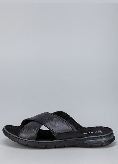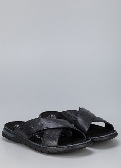 • Мужские шлепки из натуральной кожи от бренда Bugatti. Перекрещивающиеся ремешки дополнены тисненым логотипом и создают комфортный образ.