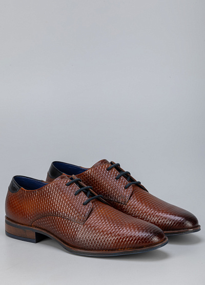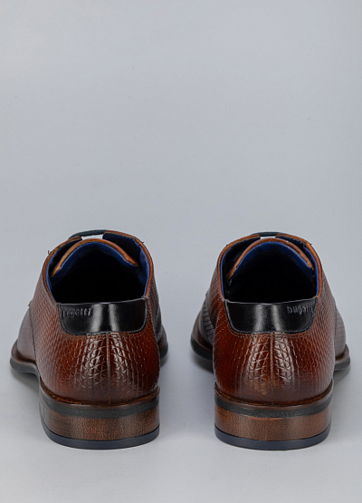 • Мужские туфли коричневого цвета из натуральной кожи от бренда Bugatti. Данная модель прекрасно сочетается с любым деловым нарядом и создает элегантный, стильный образ. Открытая шнуровка в тон. Закругленный носок. Логотип на пятке. Плоская подошва на низком каблуке. Они станут незаменимым атрибутом любого гардероба, ведь в них вы всегда будете чувствовать себя комфортно и уверенно.