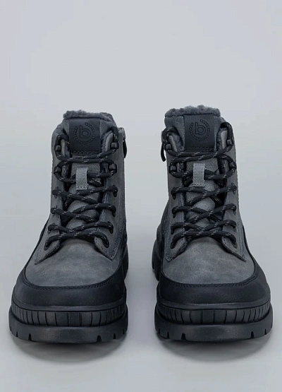• Мужские ботинки Bugatti в сером цвете — сочетание мужественного стиля и комфорта. Мягкая меховая подкладка и прочная подошва обеспечивают надёжную защиту от холода. Эмблема бренда придаёт модели выразительный вид.