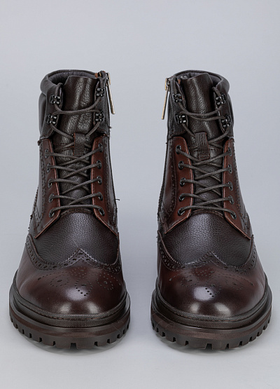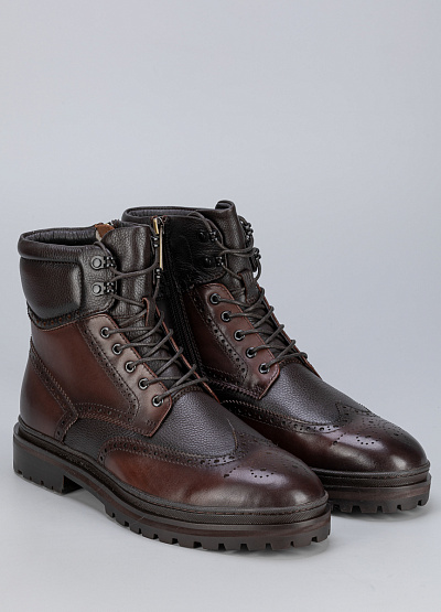 • Мужские ботинки коричневого цвета из натуральной кожи от бренда Duca Daretti. Модельарантирует идеальную поддержку стопы, делая каждую вашу прогулку легкой и комфортной. Их элегантный дизайн подчеркнет вашу индивидуальность и стиль. Открытая шнуровка в тон. Мыс оформлен рельефным швом.