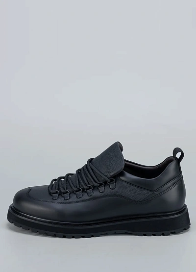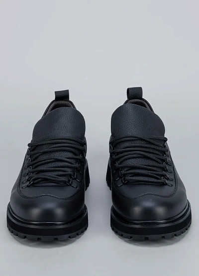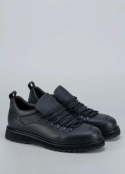 • Мужские ботинки Duca Daretti — современное воплощение практичного городского стиля с намёком на альпийскую классику. Модель выполнена из плотной натуральной кожи в насыщенном чёрном цвете. Декоративная шнуровка с металлическими петлями и утолщённый язык создают динамичный силуэт и надёжную фиксацию стопы. Подошва с глубоким протектором обеспечивает отличное сцепление с поверхностью и комфорт при ходьбе.