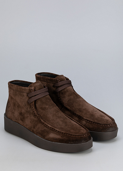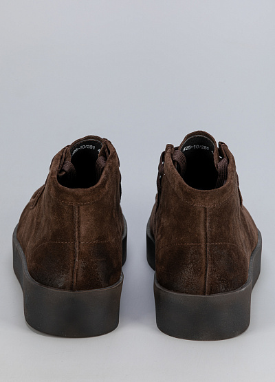 • Мужские утеплённые ботинки Duca Daretti выполнены из мягкой коричневой замши, создающей аккуратный и универсальный образ. Благодаря невысокой шнуровке модель удобно фиксируется на ноге, а внутренняя подкладка обеспечивает комфорт в прохладную погоду. Лёгкая и амортизирующая подошва делает обувь практичным выбором для повседневной носки.