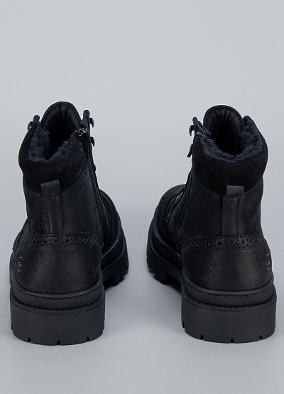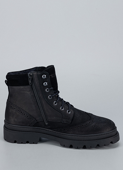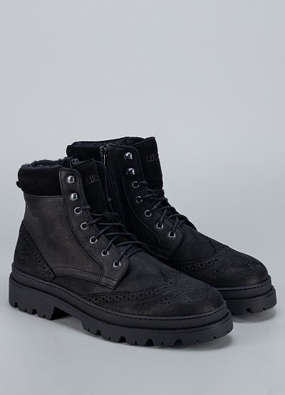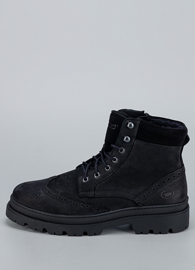 • Практичные мужские ботинки Inwood в универсальном чёрном цвете сочетают в себе брутальный стиль и комфорт для холодного сезона. Выполненные из прочной натуральной кожи с мягкой матовой текстурой, они дополнены декоративной перфорацией в классическом брогированном стиле. Утеплённая подкладка сохраняет тепло, а рельефная подошва гарантирует отличное сцепление с поверхностью.