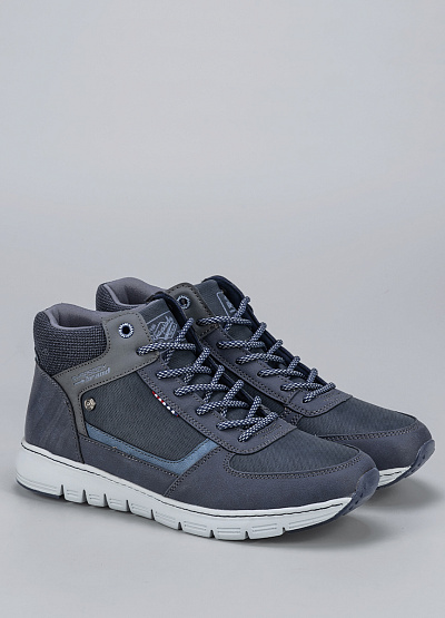 • Мужские ботинки темно-синего цвета из экокожи и текстиля от бренда Rhapsody. Модель на плоской подошве гарантирует идеальную поддержку стопы, делая каждую вашу прогулку легкой и комфортной. Открытая шнуровка. Их дизайн подчеркнет вашу индивидуальность и стиль.