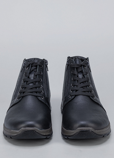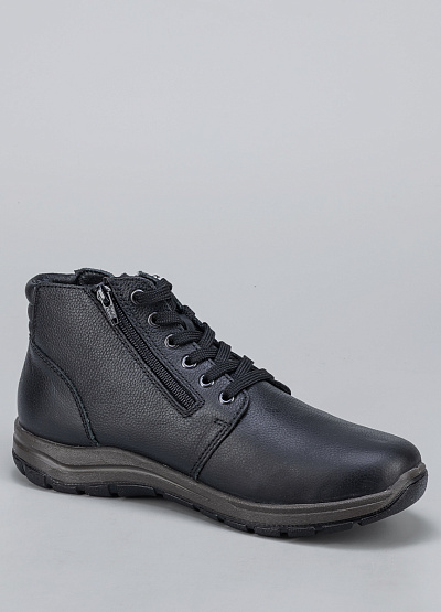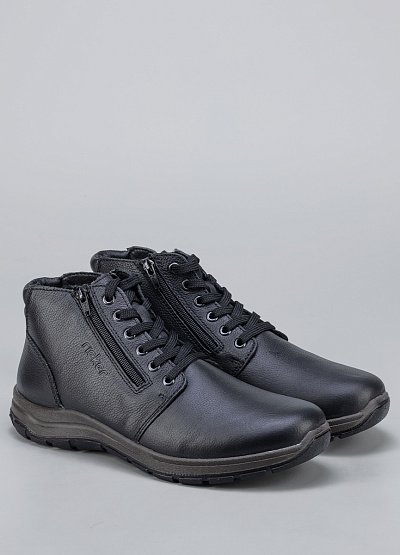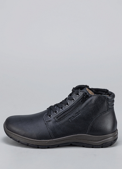 Женские ботинки черного цвета из натуральной и экокожи от бренда Rieker. Модель на шнуровки с застежкой на молнии сбоку гарантирует идеальную поддержку стопы, делая каждую вашу прогулку легкой и комфортной. Их элегантный дизайн подчеркнет вашу индивидуальность и стиль.