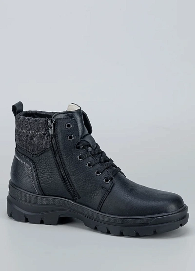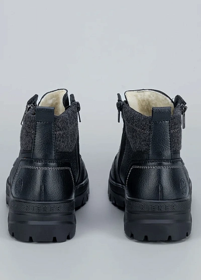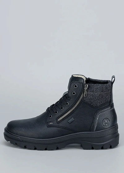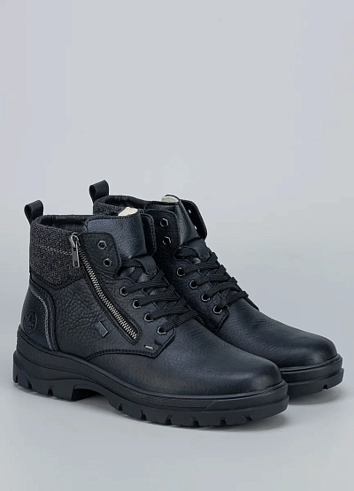 Мужские ботинки Rieker на шнуровке с боковой молнией — идеальный выбор для холодного времени года. Модель выполнена из экокожи с текстурированной поверхностью и утеплённой подкладкой. Устойчивый протектор обеспечивает хорошее сцепление с поверхностью, а лаконичный дизайн подходит под любой стиль одежды.