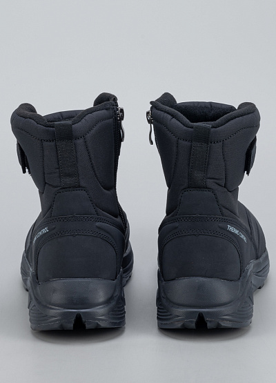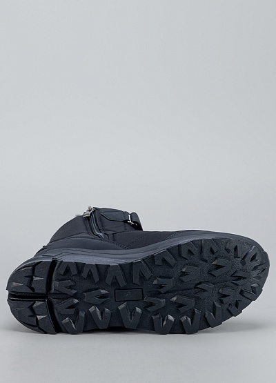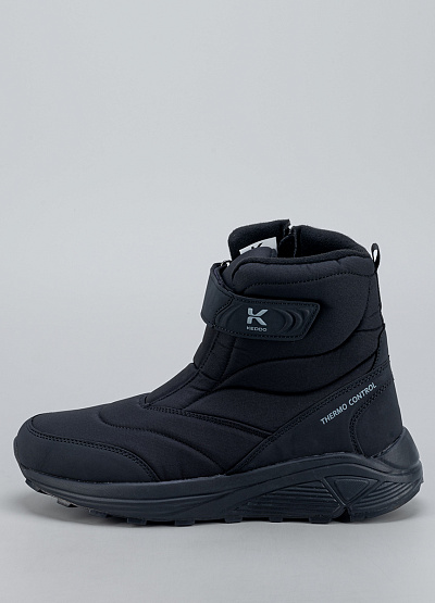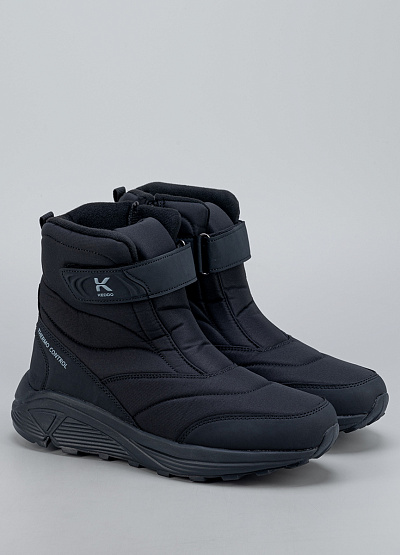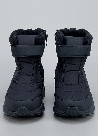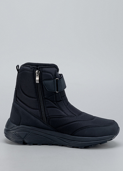 • Мужские зимние ботинки в классическом чёрном цвете — тёплая и функциональная модель для холодного сезона. Верх выполнен из плотного, влагозащищённого материала с мягкими стёжками, которые обеспечивают дополнительную теплоизоляцию. Внутри — уютная утеплённая подкладка, сохраняющая комфорт даже в мороз. Удобная застёжка на липучке облегчает обувание и помогает точно зафиксировать ботинки на ноге. Прочная подошва с глубоким протектором обеспечивает устойчивость на снегу и скользких поверхностях.