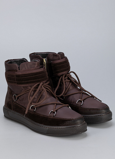 • Мужские дутыши коричневого цвета из нубука и замши от бренда Mattini. Модельгарантирует идеальную поддержку стопы и защиту от холода, делая каждую вашу прогулку легкой и комфортной. Их уникальный дизайн подчеркнет вашу индивидуальность и стиль.