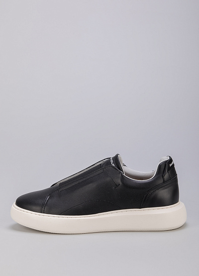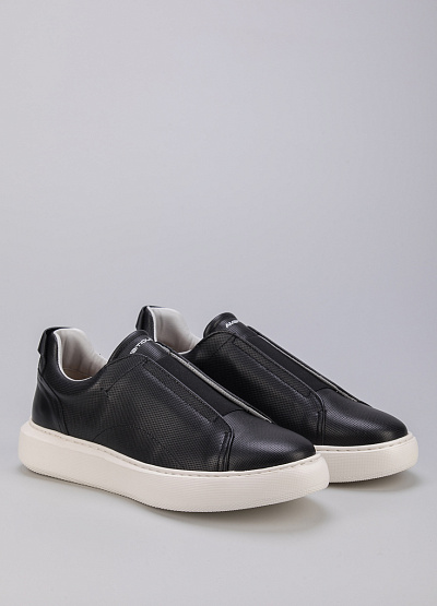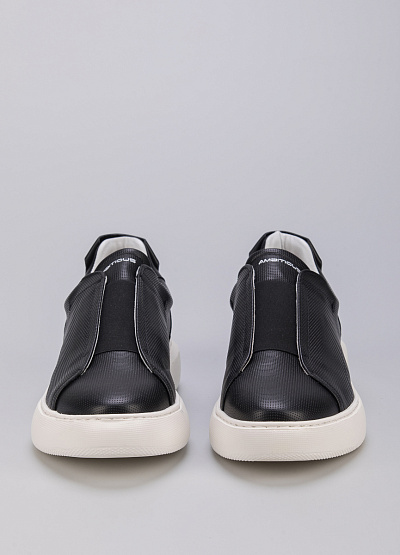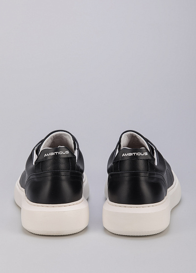 • Мужские кеды из натуральной кожи от бренда Ambitious. Закругленный носок. Широкая эластичная резинка на язычке. Петли для подтягивания сзади с логотипом. Плоская подошва.
