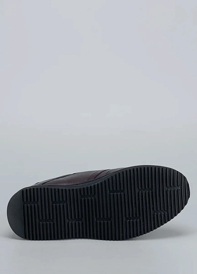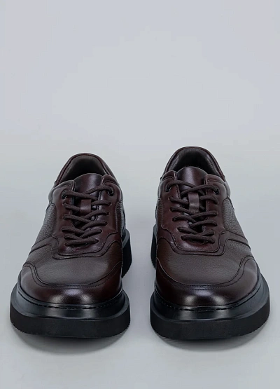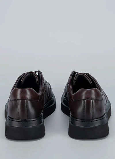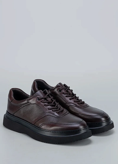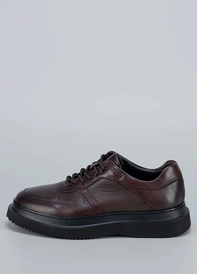 • Низкие кеды Duca Daretti из коричневой кожи с зернистой фактурой и контрастной серой подошвой — универсальная база для casual-луков.