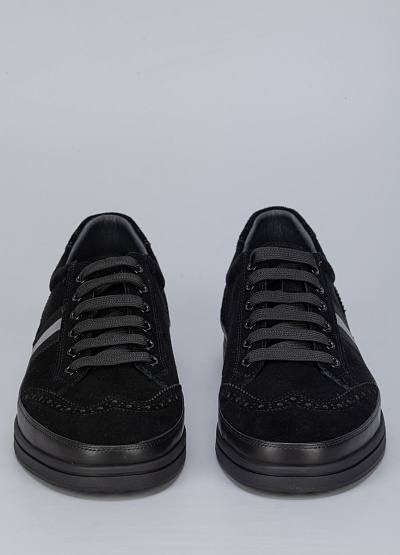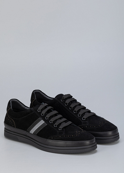 • Мужские кеды черного цвета из натуральной замши от бренда Duca Daretti. Модель имеет классический дизайн, который можно сочетать с кэжуал, классическим, спортивным и городским стилем. Боковую часть украшает принт. Эта модель предназначенная для тех, кто ищет обувь, комфортно адаптирующуюся к ноге.