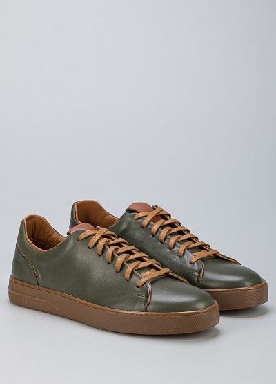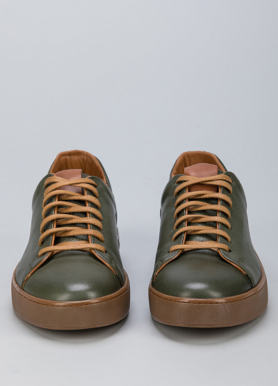 • Мужские кеды из натуральной кожи от бренда Ellin shoes. Закругленный носок. Открытая шнуровка. Контрастный язычок. Плоская подошва.