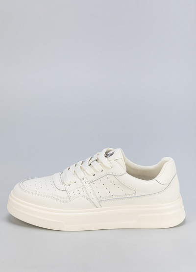 Мужские кеды в стиле sport casual выполнены в универсальном белом цвете — идеальный выбор для тех, кто ценит комфорт и современный минимализм. Чистый силуэт и гладкая текстура делают модель базовой парой на каждый день.