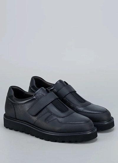 • Мужские кеды Mattini — комфортная и современная модель в минималистичном дизайне. Изготовлены из гладкой и тиснёной натуральной кожи в чёрном цвете, что придаёт обуви выразительный, но сдержанный вид. Удобная застёжка на липучке обеспечивает быстрое надевание и идеальную посадку по ноге. Мягкая подкладка и амортизирующая подошва гарантируют комфорт в течение всего дня.