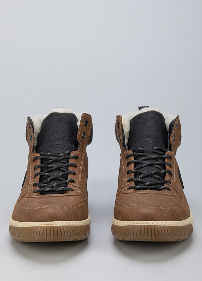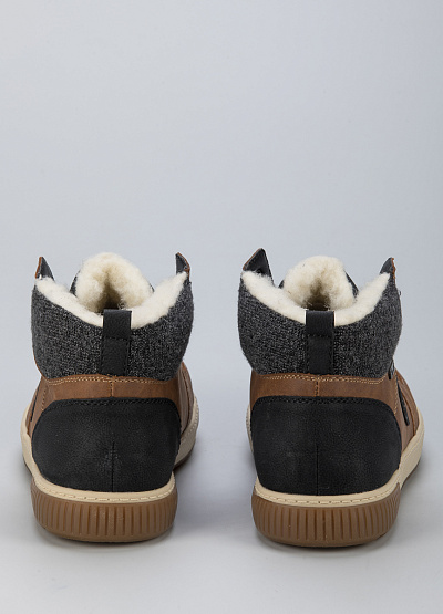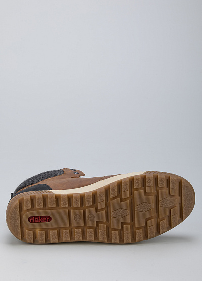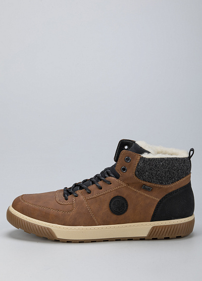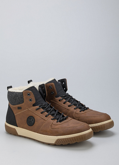 • Мужские кеды из натуральной кожи от бренда Rieker. Модель с завышенным подъемом. Закругленный носок. Открытая шнуровка в тон. Петли для подтягивания сзади. Логотип на боковой части. Меховая отделка с внутренней части. Плоская рифленая подошва.