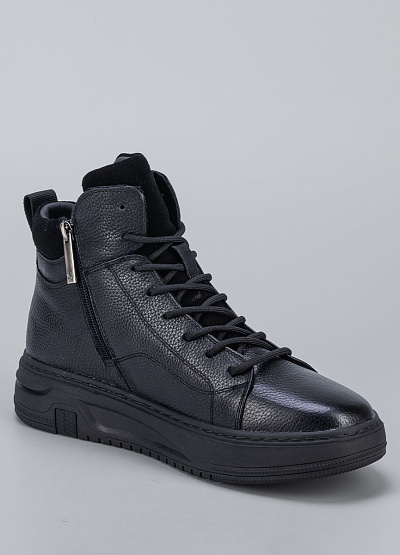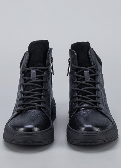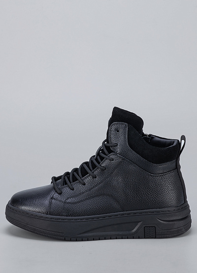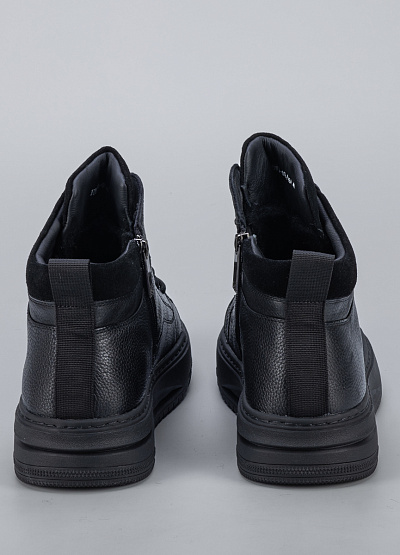 • Мужские высокие кеды черного цвета из натуральной кожи и замши от бренда Mattini. Модель имеет классический дизайн, который можно сочетать с кэжуал, классическим, спортивным и городским стилем. Открытая шнуровка в тон. Петли для подтягивания сзади. Эта модель предназначенная для тех, кто ищет обувь, комфортно адаптирующуюся к ноге.