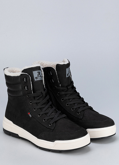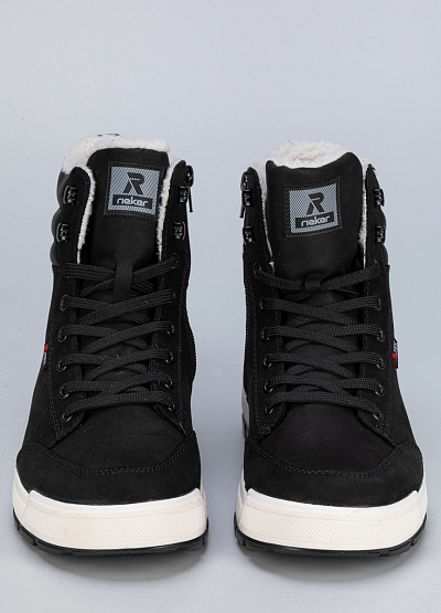 • Мужские высокие кеды черного цвета из экокожи от бренда Rieker. Модель имеет классический дизайн, который можно сочетать с кэжуал, классическим, спортивным и городским стилем. Широкая текстурная подошва придает уникальности. Эта утепленная модель точно защитит вас от холода. Она предназначена для тех, кто ищет обувь, комфортно адаптирующуюся к ноге.
