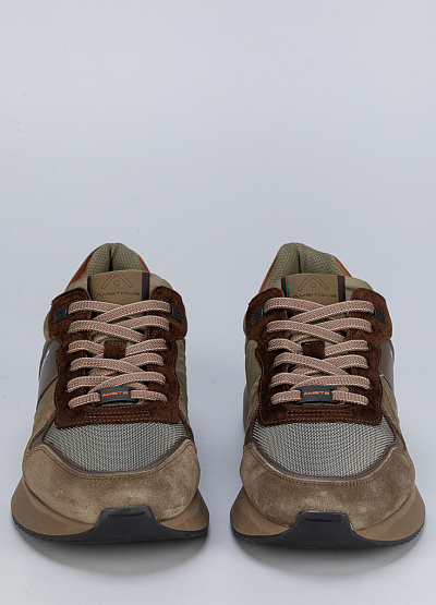 • Мужские кроссовки коричнего цвета и цвета хаки из натуральной кожи и текстиля от бренда Ambitious. Данная модель ощущается невероятно комфортно в течение всего дня. Открытая шнуровка в тон. Закругленный носок. Плоская рифленая подошва. Упростите свою жизнь с помощью одной пары обуви, которая предназначена именно для этого.