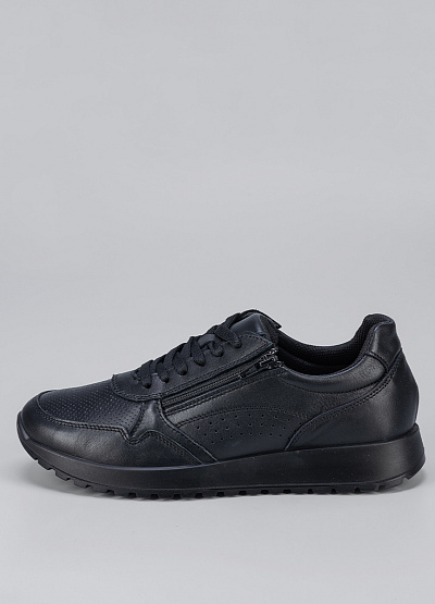 Мужские кроссовки черного цвета из натуральной кожи от бренда Imac. В них вы почувствуете легкость, комфорт и поддержку для достижения высоких результатов. Модель на шнуровке дополнена молнией сбоку. Закругленный носок. Плоская рифленая подошва. Полная свобода движений обеспечена.