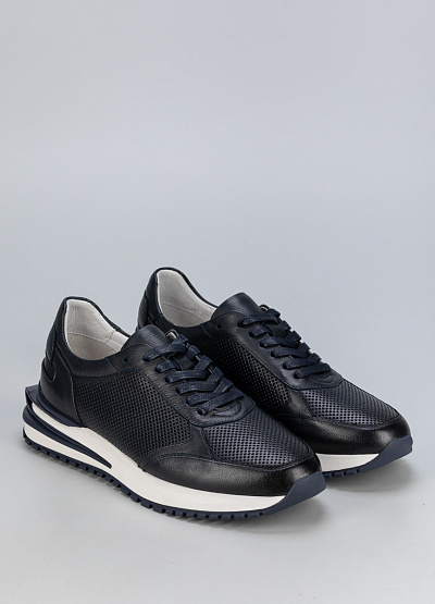 • Стильные и комфортные мужские кроссовки из натуральной кожи – идеальный выбор для активного образа жизни. Перфорированные вставки обеспечивают отличную вентиляцию, а амортизирующая подошва дарит комфорт при ходьбе. Современный дизайн и универсальный темно-синий цвет позволяют сочетать модель как с повседневной, так и со спортивной одеждой.