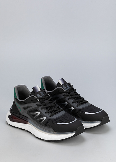 • Функциональные и стильные мужские кроссовки черного цвета обеспечивают комфорт и поддержку стопы даже при длительных нагрузках. Верх из легкого текстиля с синтетическими вставками улучшает вентиляцию, а амортизирующая подошва с вставкой в области пятки снижает ударную нагрузку.