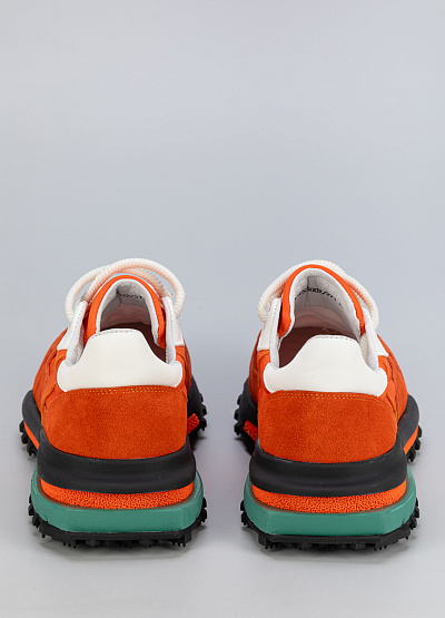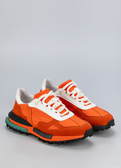 • Мужские кроссовки в ярко-оранжевом цвете с контрастными белыми и чёрными деталями — эффектная модель для тех, кто хочет выделяться. Современный спортивный стиль и броский дизайн делают эту пару главным акцентом в образе.