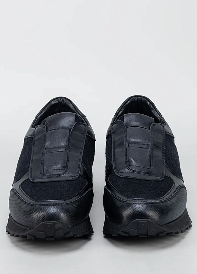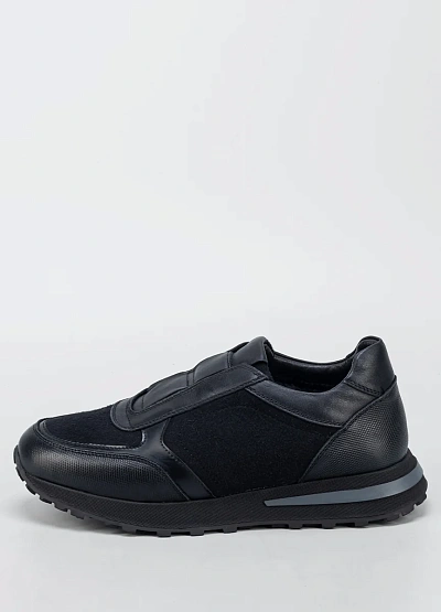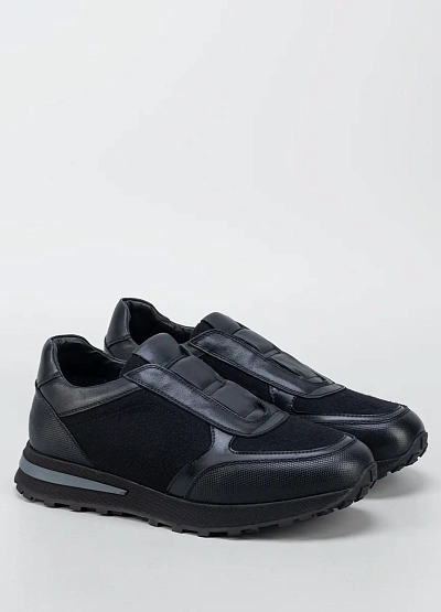 • Мужские повседневные кроссовки без шнуровки, выполненные в универсальном чёрном цвете. Модель сочетает комфорт спортивной обуви и сдержанный внешний вид, приближённый к классическим слипонам. Комбинация гладкой и текстурной поверхности верха делает дизайн практичным и аккуратным, а эластичная вставка обеспечивает удобную посадку и лёгкость надевания.